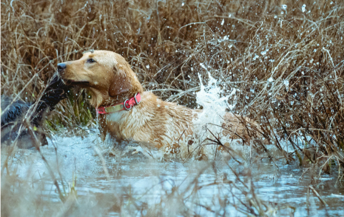 Before sunset and whiskey, and to size up this interloper in her factory-fresh camo, the crew took me to a pond out back for a gun safety lesson and target practice. Each gave me good advice that nevertheless failed to yield a clean shot. Shoot in front of the target or just below. Aim straight at it. Imagine a duck and set your sights on the neck, the top of the back, the beak. Bailey, a young and wiry yellow lab, dived into the water to retrieve my unbroken clays.